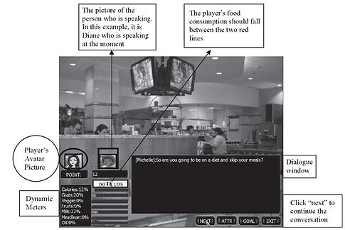 Here is an example of a video game environment created by Wei Peng, called RightWay Café. Its goal is to increase knowledge about health education in a way that is more fun than taking notes in a classroom. The study showed that participants walked away from the game with a deeper understanding about healthy dietary habits and a willingness to engage in healthier lifestyles. This is an example of a game that caters to people who may not have a deep knowledge of health, and encourages all users to make healthy choices. My proposal looks at this idea from an advertising perspective for existing video games.